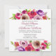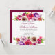 Hermosas flores rosas brillantes decoran esta moda cuadrada de ducha de novia. La preciosa tipografía está enmarcada por un espléndido magenta vibrante y un ramo de flores moradas en la parte superior y en el fondo. Pida estas elegantes invitaciones para el brunch y el bullicio o una clásica ducha por la tarde para la novia.