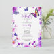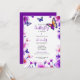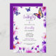 Invitación Vibrante Morado Floral Butterflies Primer cumpleañ