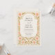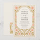 Delicate blush-pink flowers and intricate golden vines form an ornate frame around your wedding details, blending Victorian opulence with Art Nouveau elegance. The design’s soft cream and gold tones bring warmth, while graceful typography adds sophistication — perfect for formal or black-tie weddings.