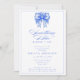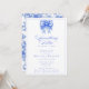 Un elegante estilo vintage "algo azul antes de la invitación a la ducha de novia "yo hago" con un Bow victoriano adornado con flores y fuente de caligrafía vintage en French Blue. Al revés, una decoración de chinoiserie floral azul.
