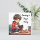 Invitación a la fiesta de cumpleaños relacionada con la pizza y los videojuegos de niños personalizados. Niño animado jugando videojuegos y azul y un fondo de rodajas de pizza y controladores de videojuegos. Cita de cumpleaños con temática de videojuegos.