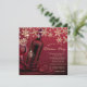 Elegante copa de vino, copos de nieve y botella de vino con bolas de Navidad dorado sobre fondo rojo. Estas hermosas invitaciones a Navidades son perfectas para Navidades que invitan a cenar, invitaciones de intercambio de regalos de vacaciones, recaudaciones de fondos para Navidades, invitaciones para fiestas de vacaciones y otros eventos que se llevan a cabo durante el mes de diciembre. Utilice los campos de plantilla para agregar su propia información de eventos.