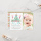 Chicas invitan a una fiesta de primer cumpleaños con adorable tepe y globos tribales rústicos sobre un fondo de flecha de bonito floral y tribal con fondo de diseño tribal en el reverso. Estas invitaciones para fiestas tribales salvajes de un primer cumpleaños se personalizan fácilmente para tu evento simplemente agregando tus detalles.