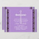 Celebración del Sacramento Cristiano de Confirmación en dramáticos tonos de morado, lavanda, negro y blanco, con cruz religiosa y elegante y dramático diseño de vid floral. Personalizar con el nombre y los detalles del evento de su hijo para una hermosa invitación de mantener este importante hito de la fe. De la tienda de regalos de la fe cristiana.