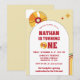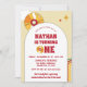 Celebra el primer cumpleaños de tu pequeño con estilo con nuestra Invitación de cumpleaños infantil de vinilo retro amarillo para la fiesta de 1er cumpleaños de niños. Esta vibrante invitación presenta un fondo a rayas amarillas y naranjas soleadas que establece un tono festivo y alegre para la celebración. Al lado, un gráfico de CD de vinilo aporta un toque nostálgico, capturando perfectamente la esencia de una fiesta temática retro.
