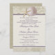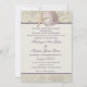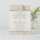 Invitación a una boda en la playa de Vintage con fondo de marfil, marfil y un suave texto morado. Los dólares de arena y las estrellas de mar y el aspecto rústico de la burlap, personalizar el texto y los tipos de letra para que se adapten a su estilo.