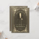 Este elegante diseño de proposición de groomsman con aire vintage tiene un marco barroco de oro vintage sobre fondo negro. En el centro, un elegante traje de estilo antiguo. Encima de la demanda está el texto en arco "Hora de vestir". En la parte inferior, parcialmente superpuesta la demanda, está el texto: Se solicita su servicio como Groomsman y el nombre del futuro novio. Todo el texto está en mayúsculas doradas y se puede cambiar En la parte posterior, en el mismo marco dorado vintage, hay un mensaje en un guión caligráfico elegante. El traje vintage, apropiado para un boda de corbata blanca - un esmoquin negro, pantalones negros, chaleco blanco de corte bajo (chaleco), camisa blanca, corbata de arco blanco - es de un muñeco de papel vintage de 1910, "La familia de papel Lettie Lane", ahora de dominio público. El marco vintage es de una encuadernación de libros franceses vintage, de Georges Mercier (1885-1939) - Madame de Maupin de Teophile Gautier, volumen 1, edición 1911, París - ahora de dominio público, de la Biblioteca Pública de Nueva York