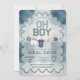 Celebrate your little MVP in style with this vintage blue football “Oh Boy” baby shower invitation! Featuring classic varsity typography, a charming baby clothesline with football details, and a soft dusty blue palette, this sporty design is perfect for welcoming a baby boy.