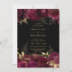 Fijar el tono para una celebración romántica y elegante con esta invitación a bodas floridas de oro y borgoña. Con sus rosas burdeos y su follaje dorado sobre un rico y morboso fondo negro, este diseño desprende un encanto atemporal y una sofisticación decadente. Perfecto para un boda de inspiración vintage, de otoño o de noche, esta invitación es totalmente personalizable para coincidir con su estilo único y detalles bodas. Elementos coincidentes disponibles en el almacén. c) Somerset Fine Paperie