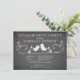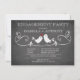 Pizarra vintage de moda Invitación a la fiesta de amor para los pájaros con una pizarra popular con un bonito par de aves amorosas con un corazón sentado en una elegante y florida rama. Para un toque especial, la parte posterior de nuestras invitaciones se coordina con nuestro diseño frontal. Perfecto compromiso moderno y popular en el pizarrón. Son fiestas comprometidos en la invitación de compromiso.
