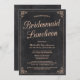 Invitación a almorzar a la dama de honor de estilo vintage con escritura caligráfica de bonito, marco antiguo y fondo de pizarra de moda.