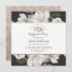 Rosas y Flores Vintage de Flores Blancas y Oro Rosa. Un estilo clásico vintage y elegante, con muchas hojas y follaje gris, marfil blanco, oro Rosa, rosa sucio, verde pálido y gris. Con elementos florales pintados a mano, fuentes clásicas de guiones vintage y elegantes acentos de Relieve metalizado Rosa de oro sobre un fondo editable en color gris oscuro del carbón vegetal - Invitaciones cuadradas de la fiesta de compromiso Boda! ~ Revisa mi tienda para ver toda la suite boda para este diseño!