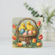Las preciosas y anticuadas chicas de Pascua están sentadas en una cesta llena de huevos con vibrantes tulipanes por todas partes. Personalice el otro lado de esta invitación con los detalles de su fiesta .