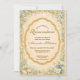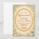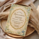 A romantic coastal garden design featuring delicate wildflowers, seashells, starfish, and soft seaside greenery surrounding an elegant ornate frame. The watercolor florals and warm antique parchment background create a timeless aesthetic inspired by vintage botanical prints and coastal charm. Perfect for an elegant celebration with a refined seaside atmosphere.
