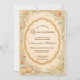 A romantic coastal design featuring delicate seashells, starfish, soft coral florals, and flowing seaside greenery surrounding an elegant ornate frame. The watercolor illustrations and warm antique parchment background create a timeless beach garden aesthetic inspired by vintage botanical prints and ocean charm. Perfect for a refined seaside celebration with soft coastal elegance.