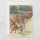 Ilustración vintage victoriana escena navideña de Merry Christmas con Santa Claus y sus renos entregando regalos en Nochebuena. Santa vuela sobre la nieve en una fría noche de invierno con luna llena en el cielo.