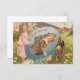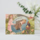 Dulce chica victoriano y niño con una postal antigua y vintage deseando saludos de Pascua. Personalizado restauró la imagen.