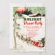 Divertido tema de Santa, vintage cena navideña - Invite a la familia, amigos, vecinos y compañeros de trabajo a su fiesta de fiestas de campo. Lee 'Fiesta de la cena de Navidad' en colores modernos, atrevidos, rojos y verdes Navidades con letras. ilustracion de Navidades acogedores de estilo vintage en tonos rojos, verdes y marfil en tonos vacacionales, muestra una cabaña rústica rodeada de nieve con humo procedente de la chimenea rodeada de árboles verdes con una luna llena de color rojo. En la parte inferior, Santa lleva a sus renos y trineo lleno de regalos. La invitación a la cena de los Navidades con los detalles de la fiesta de personalizado se muestra a continuación en color rojo. Back tiene un fondo de color crema sólido y coordinado con borde de confeti rojo y verde en la parte superior e inferior.Nota Todas las imágenes están impresas. Confesti no real. También hay diferentes opciones de papel de invitación, formas y tamaños. Invitaciones a fiestas de vacaciones retro para su fiesta de vacaciones rústica. Adecuado también para fiestas de vacaciones, Navidades de casa abierta, fiesta de recorte de árboles, Navidades de campo, etc. Encuentre más invitaciones para fiestas de invierno en nuestra tienda Zazzle.com/angela65.