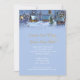 Invitación a la fiesta de compromiso de Navidad. Elegante, tranquilo y tradicional, perfecto para sus fiestas de vacaciones. Una tranquila imagen vintage del mundo nevado en invierno de nieve blanca, puente de madera, río de hielo, árboles cubiertos de nieve y cálidas casas familiares, hará de tu día especial lleno de bendiciones de vacaciones.