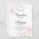 Una romántica invitación a una boda rosa rubí con botánicos rosas de época, nombres de guión y tipo clásico. Las flores blandas hacen que esto sea una invitación femenina, pero no demasiado. Perfecto para un boda de inspiración vintage, una boda al aire libre o un boda clásico y atemporal. Parte de la colección Vintage Floral boda de Stacey Meacham. Encuentre accesorios que coincidan y opciones de color adicionales aquí: http://www.zazzle.com/collections/vintage_floral_wedding-119209917940763393