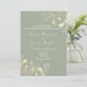 Elegante, moderno boho, verde sabio vintage todo en una sola invitación de boda con código QR para rsvp en línea, sitio web, foto de la pareja, encaje floral dorado y simple escritura caligráfica.