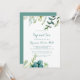 Esta caligrafía de eucalipto verde vintage y la invitación a ver es perfecta para una reunión rústica con el fiesta. El diseño está decorado con un color verde acuático pintado a mano, hojas marinas y flores cuidadosamente dispuestas en ramos.
