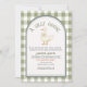 Un ganso tonto llegará pronto a la invitación de Baby Shower Sage Green Gingham