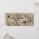 Retroceda en el tiempo con nuestra Vintage Halloween Party Ticket Invitation. Abraza la espantosa Halloween y celebra con un fiesta de disfraces para adultos que presenta "Disfraces y Cócteles" o "Boos y Booze". Esta invitación única al estilo de las entradas le agrega un toque de nostalgia a su reunión de Halloween. Prepárate para una noche de emociones y escalofríos con nuestras invitaciones de Halloween adornadas con clásicos símbolos de Halloween como cráneos, esqueletos y un toque gótico. No te pierdas la espeluznante diversión... ¡agarra tu boleto ahora!
