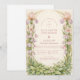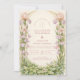 A soft romantic garden design featuring blush tulips, creamy lilies, and delicate greenery arranged in a refined floral frame. The composition blends airy ivory tones with subtle pastel florals for an elegant, timeless look. Perfect for spring and summer celebrations, this design feels fresh, graceful, and beautifully understated. Personalize the text to create a polished keepsake for your special day.