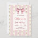 Invitación Vintage Pink Bow Floral Chica Cumpleaños