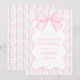 El diseño es de estilo vintage, decorado con rosas y rayas rosas. Esta invitación, coronada con un arco de coqueta rosa y complementada con un elegante tipo de letra rosada, captura una estética ondulada, chic e intemporal. Completamente personalizable para adaptarse a los detalles del evento, es la manera perfecta de marcar el tono para una hermosa celebración.