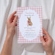 Celebrate the sweetest arrival with a vintage touch! This charming invitation features a soft pink gingham background, a watercolor bunny adorned with a delicate coquette bow, and a wavy oval frame highlighting the playful phrase ‘Somebunny is on the way.’ Perfectly whimsical and elegant for welcoming your little girl.