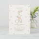 This "ONE Silly Goose" birthday invitation design features a cute goose with a balloon, and a whimsical vintage stripes background with cute pink flowers.