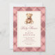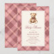 Invitación Vintage Pink Plaid Teddy Bear Baby Shower