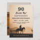 Invitar a amigos y familiares a una celebración histórica con esta invitación de cumpleaños rústico de Vintage. Con una llamativa silueta de vaquero a caballo, en un cálido y soleado telón de fondo, esta invitación al personalizable captura a la perfección el espíritu del salvaje oeste y el encanto rústico. Ideal para la fiesta de cumpleaños número 90 con un tema occidental, rodeo o campestre, su diseño clásico evoca una sensación de aventura y un encanto atemporal. La invitación incluye un amplio espacio para los detalles del evento, incluyendo la fecha, hora, ubicación e información de RSVP. "¡Saddle Up!" para una memorable fiesta de cumpleaños con esta exclusiva y elegante invitación fotográfica que promete una ocasión verdaderamente especial. Para más productos visita mi zazzle shop: Youtopia Official