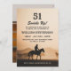Invitar a amigos y familiares a una celebración histórica con esta invitación de cumpleaños rústico de Vintage. Con una llamativa silueta de vaquero a caballo, en un cálido y soleado telón de fondo, esta invitación al personalizable captura a la perfección el espíritu del salvaje oeste y el encanto rústico. Ideal para una fiesta de cumpleaños número 51 con un tema occidental, rodeo o campestre, su diseño clásico evoca una sensación de aventura y un encanto atemporal. La invitación incluye un amplio espacio para los detalles del evento, incluyendo la fecha, hora, ubicación e información de RSVP. "¡Saddle Up!" para una memorable fiesta de cumpleaños con esta exclusiva y elegante invitación fotográfica que promete una ocasión verdaderamente especial. Para más productos visita mi zazzle shop: Youtopia Official