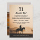 Invitar a amigos y familiares a una celebración histórica con esta invitación de cumpleaños rústico de Vintage. Con una llamativa silueta de vaquero a caballo, en un cálido y soleado telón de fondo, esta invitación al personalizable captura a la perfección el espíritu del salvaje oeste y el encanto rústico. Ideal para una fiesta de cumpleaños número 71 con un tema occidental, rodeo o campestre, su diseño clásico evoca una sensación de aventura y un encanto atemporal. La invitación incluye un amplio espacio para los detalles del evento, incluyendo la fecha, hora, ubicación e información de RSVP. "¡Saddle Up!" para una memorable fiesta de cumpleaños con esta exclusiva y elegante invitación fotográfica que promete una ocasión verdaderamente especial. Para más productos visita mi zazzle shop: Youtopia Official