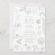 ¡El amor está en el aire con esta invitación a la ducha de novia de estilo vintage Sage Green Floral! Esta moderna invitación de inspiración vintage presenta un guión de caligrafía con letras a mano y hermosas flores de jardín de un delicado color verde sabio. Además, en la parte trasera de la tarjeta encontrarás un patrón floral vintage completamente blanco sobre un fondo verde sabio de moda — ¡qué romántico! Capta la atención de tus invitados y recibe emoción por la inminente ducha de novias enviándoles una de estas invitaciones de bonito. A sólo un vistazo, estas invitaciones transmitirán belleza y sofisticación; exactamente lo que cualquier futura novia merece. Puede estar seguro de que a sus invitados les encantará recibirlos en sus buzones. Por lo que asegúrate de pedir tu habitación hoy mismo para no perderte el encanto clásico de esta inolvidable invitación a una ducha de novias. Copyright Surridge Design Co. para Elegant Invitaciones, todos los derechos reservados.