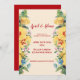 Invitación a la Boda floral de primavera o verano con flores amarillas, azules y rosas.