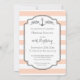 Invitaciones a la fiesta de cumpleaños número 50 del personalizado con un amplio patrón vintage de rayas rosas y blancas de durazno, marco rústico gris oscuro y detalles náuticos. Añade tu nombre y detalles del fiesta para una invitación única y elegante a la fiesta de cumpleaños.