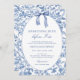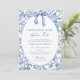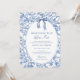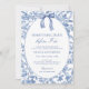 ¡Celebremos a la futura novia con esta vieja invitación a la ducha de novia! Con una romántica paleta de colores azul polvoriento y elegantes motivos inspirados en la tela francesa, este diseño intemporal combina el encanto vintage con la sofisticación. Delicados florales, un marco de arco de coqueta y una elegante tipografía de escritura crean un ambiente inspirado en la herencia, perfecto para un fiesta de jardín, ducha con temática de té o elegante brunch de novias. Ya sea que usted esté organizando un clásico asunto de campo o un evento de moda de inspiración parisina, esta invitación marca la pauta para una celebración elegante. Personalice con sus detalles del evento para hacerlo único suyo!