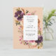 Establece el tono de tu celebración con nuestras invitaciones a la boda de las praderas violetas. Los cautivadores violetas y flores silvestres contra un cálido fondo de melocotón encapsulan maravillosamente la esencia de los botánicos otoñales. Invite a sus seres queridos a compartir su día especial con una invitación que equilibra perfectamente la modernidad y la naturaleza.