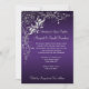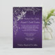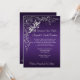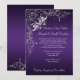Atractiva tarjeta de invitación de boda de aniversario de 25 años con fondo de color púrpura oscuro adornado con florituras plateadas ornamentadas. Fácil de personalizar con su propia información.