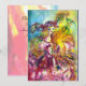 Pintura colorida, caprichosa y vibrante acuarela en colores amarillo brillante, púrpura, azul inspirado en el Carnaval de Venecia . Arlecchina es la contrapartida femenina de Arlequín