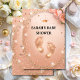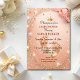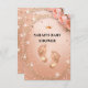 Este diseño deslumbrante presenta acentos purpurinas de melocotón espumosos en un suave fondo de melocotón, que exhiben con gusto pequeños pies de bebé purpurina, rosas y tiarra. Perfecto para dar la bienvenida a una pequeña princesa, esta elegante invitación le da un toque de glamour a su evento especial. Celebra con estilo y haz que tu ducha de bebé sea inolvidable con esta invitación de lujo y atractiva.