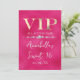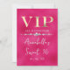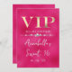 Esta invitación de fiesta personalizada presenta un diseño VIP glamuroso en un fondo de color rosa caliente. El título de VIP está impreso en una fuente de estilo de lámina dorada, seguido por el título del evento. Una banda de diamantes separa el texto. La ubicación y hora de la fiesta o evento están impresas en la parte posterior. Es perfecto para una fiesta de cumpleaños, dulces 16, despedida de soltera u otra celebración elegante.