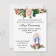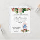 La invitación a la coronación de mayo azul de la ducha de Rosas Shoppe resalta los detalles de su evento religioso con un hermoso ramo de rosa. La hermosa imagen de la Virgen María, Nuestra Señora de la Gracia, llama la atención sobre la solemnidad de este evento especial. Un diseño suizo de puntos azules adorna la parte trasera de la invitación. Para ver más visitemos www.zazzle.com/showerofroses