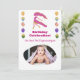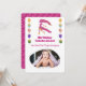 This “Special Photo Edition” Virgo invitation features a hand-painted impressionist maiden with shimmering gold glitter accents on a clean white background. Your child’s photo is beautifully showcased in a unique organic frame, surrounded by festive balloon pillars.