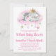 Invitación virtual a la ducha de bebé con adorable princesa elefante de niña en un fondo color agua rosa y dorado. Esta chica elefante de ducha de bebé se personaliza fácilmente para tu evento simplemente añadiendo tus detalles.