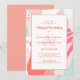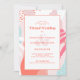 La invitación de diseño para la ceremonia de boda virtual en vivo cuenta con un patrón moderno abstracto de Memphis en tonos coloridos de coral, verde teal, rosa y blanco. La escritura elegante en coral vivo está dispuesta en un borde de coral claro coordinado sobre un fondo blanco. Una plantilla moderna para la fecha y el año complementa el diseño único de caligrafía y los nombres y apellidos de la pareja. Agregue sus datos para la fecha y hora y dirija a sus invitados a su sitio web de boda para proporcionarles los detalles técnicos de su evento de transmisión en vivo. La parte trasera de la tarjeta es de un coral claro sólido. Asegúrese de ver el enlace de la colección en esta página para ver todos los artículos que coinciden. Por favor, dirija sus preguntas o solicitudes personalizadas a invitationsuites@gmail.com.